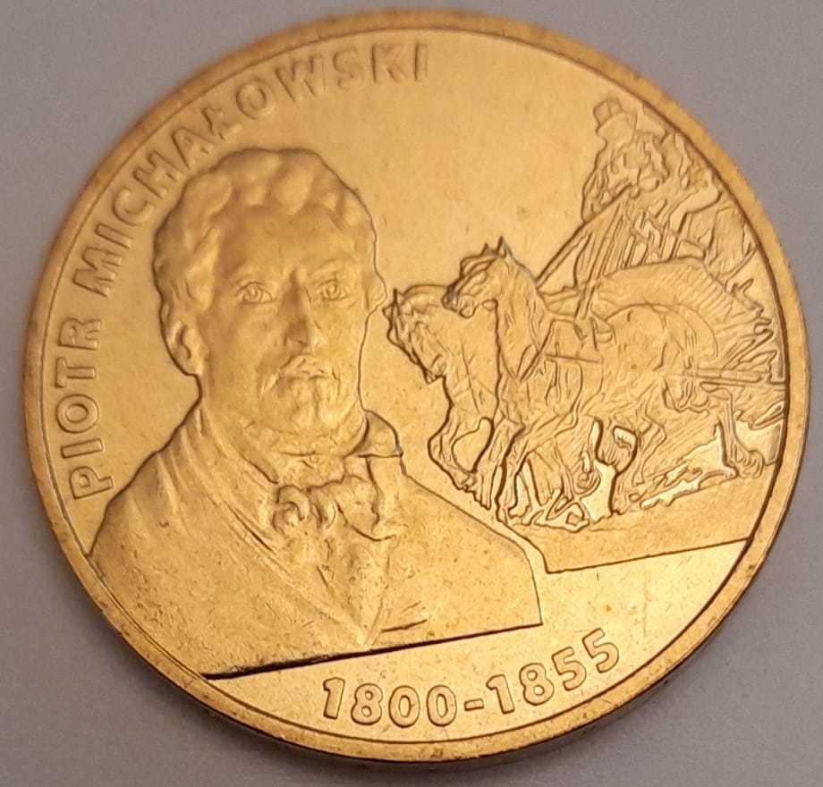 2 złote Piotr Michałowski 2012 r.- moneta okolicznościowa 2 złote Nordic Gold NG NBP, producenta Mennica Polska S.A., z serii Polscy Malarze XIX/XX w, stempel zwykły, moneta w kapslu ochronnym, stan zachowania 1/-1