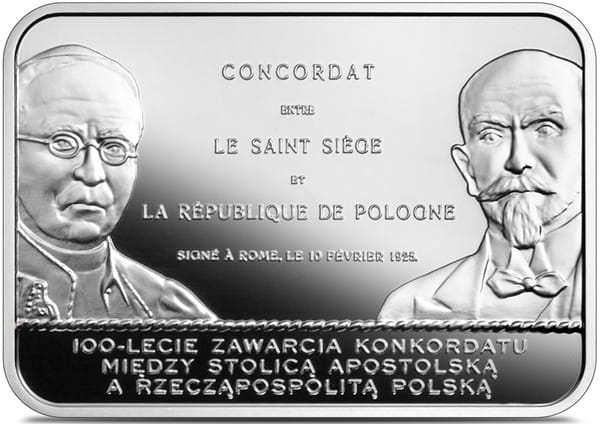 20 złotych 100-lecie zawarcia Konkordatu między Stolicą Apostolską a Rzecząpospolitą Polską 2025