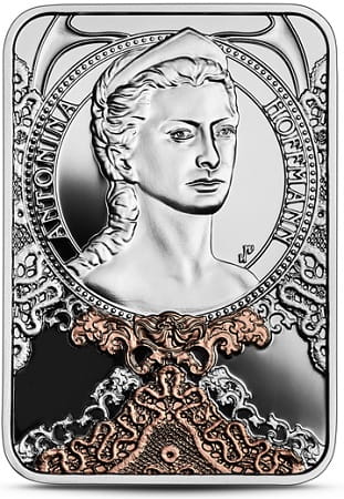 Na rewersie stylizowane popiersie Antoniny Hoffmann. Przy barku monogram projektanta monety. Po lewej stronie głowy napis dużymi literami: Antonina, po prawej stronie Hoffmann