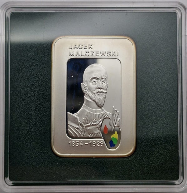 Srebrna moneta kolekcjonerska 20 złotych NBP, producent Mennica Polska S.A., z serii Polscy Malarze XIX i XX w., numer 2 z 13 w serii, stempel lustrzany, kolorowa emalia, moneta w kapslu ochronnym, stan zachowania L/L, real foto