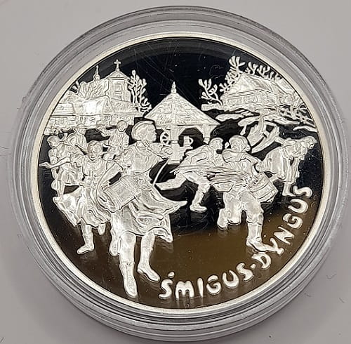 Srebrna moneta kolekcjonerska z kategorii monety 20 złotych, producenta Mennica Polska S.A. z serii Polski Rok Obrzędowy. Moneta numer 2 z 4 w serii, nominał 20 złotych, stempel lustrzany z kolorową emalią, metal / stop srebro Ag925, średnica 38,61 mm, masa 28,28 gram, rok emisji 2003, wielkość emisji 44 000 sztuk, projektant monety Robert Kotowicz, moneta w kapslu ochronnym, stan zachowania menniczy