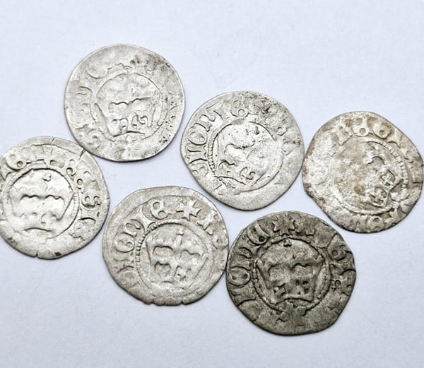Półgrosz Jana Olbrachta 1492-1501 rok - historyczne srebrne monety z lat 1492-1501. Monety bez bite bez dat. Stan zachowania obiegowy, ale nieźle czytelny.